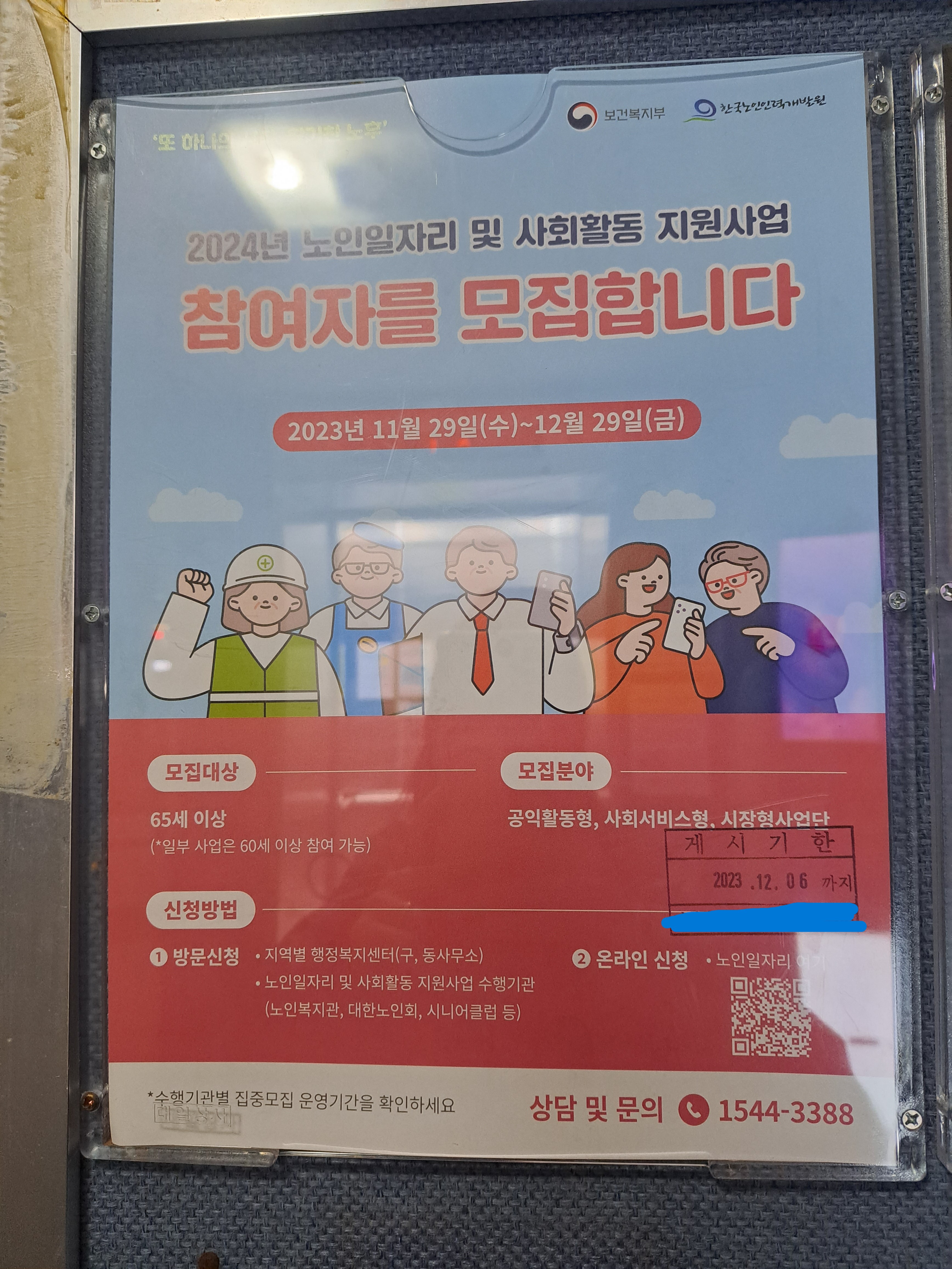 저희 아파트 1층 게시판에도 노인일자리 관련 안내문이 붙어있어 사진을 찍어놓았는데